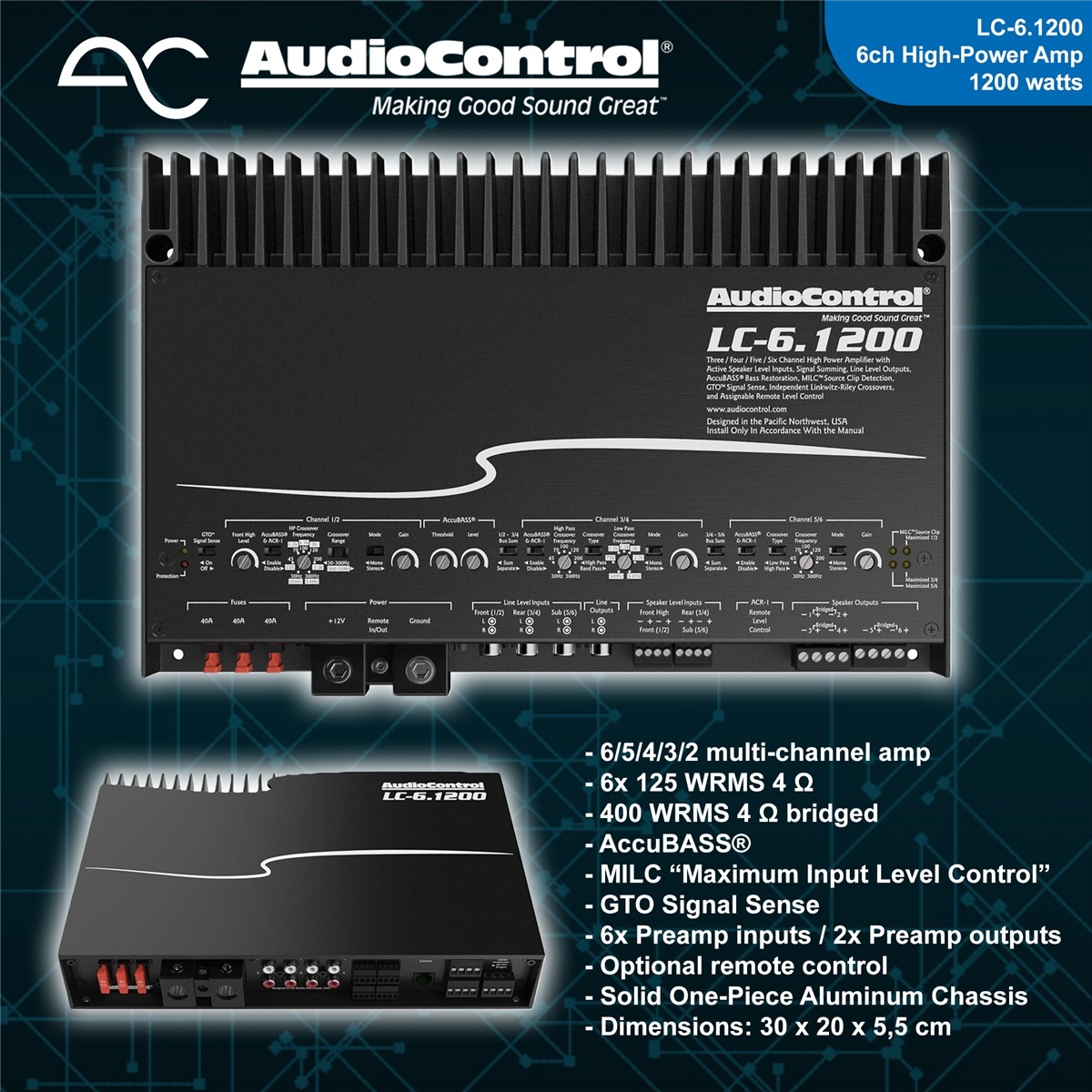 Making Good Sound Great” (Transformar um bom som em excelente) é a nossa paixão na AudioControl desde 1977 e este legado continua com o amplificador multicanal LC-6.1200.