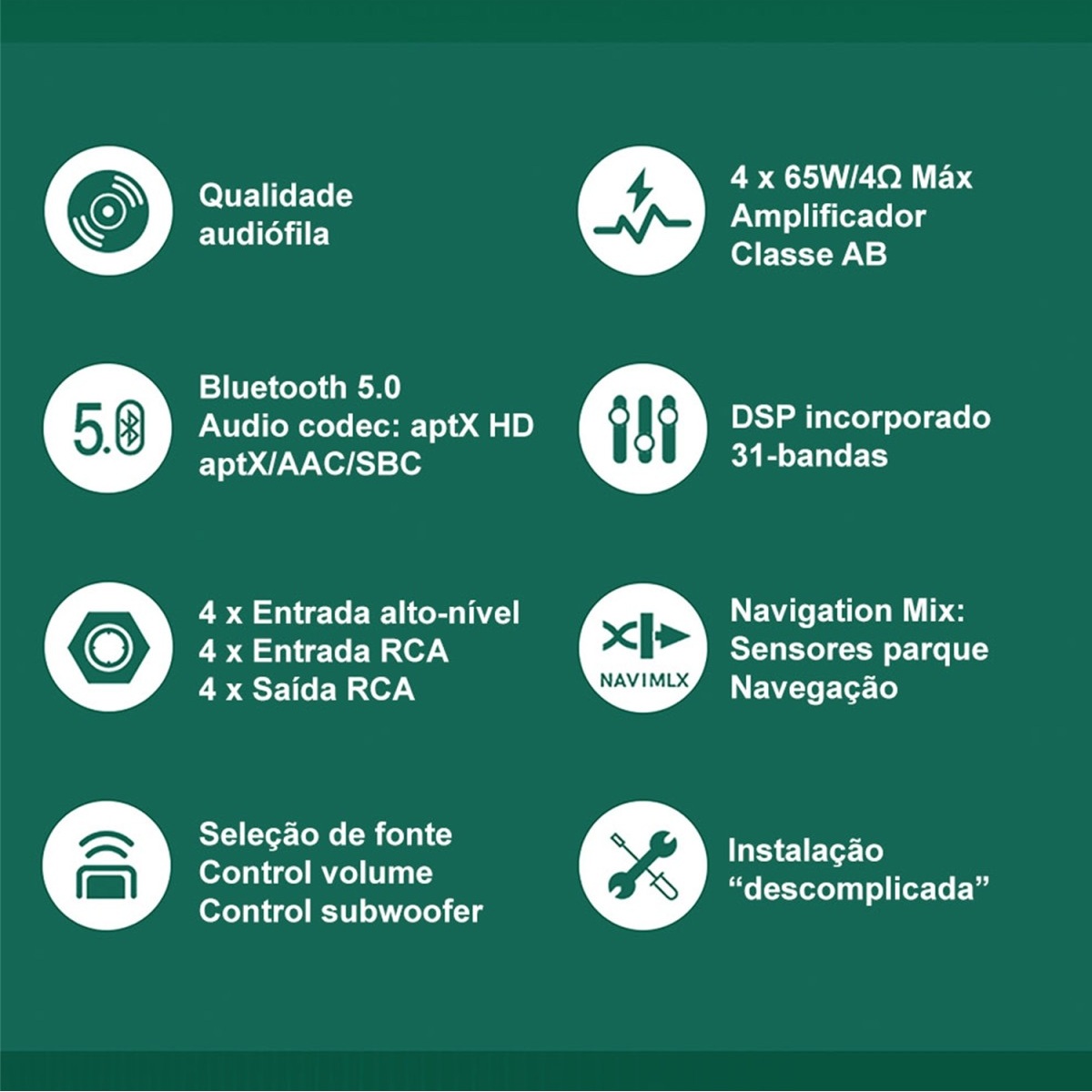 NaviMode (mistura de sinais como sensores de estacionamento ou voz de navegação, com capacidade de ajuste do nível de sensibilidade, nível e tempo de «atenuação» da fonte principal