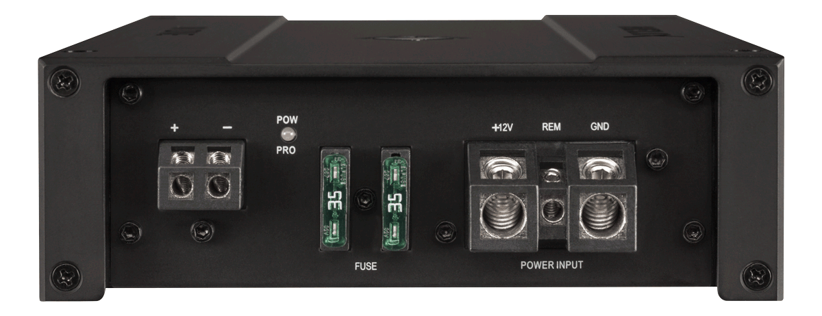 Recursos adicionais Crossover ajustável e ativo, aumento de graves, mudança de fase, capacidade Start-Stop, entrada de nível superior com função de ativação automática e ADEP (Advanced Diagnostics Error Protection), controle remoto por cabo de volume baixo