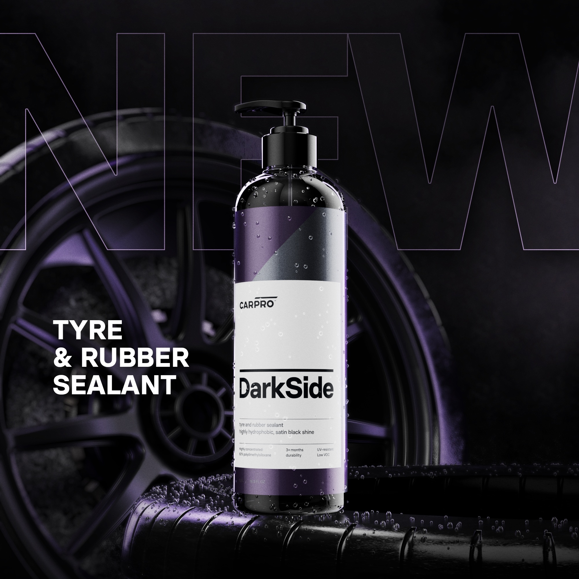O DarkSide da CarPro é um novo selante pronto a usar para pneus e borrachas. A formula do DarkSide com 60% de polidimetiloxano permite uma aplicação super rápida e fácil com o aplicador de pneus ou com o aplicador de microfibras da CarPro, deixando uma superfície com um belo aspecto de brilho satinado.