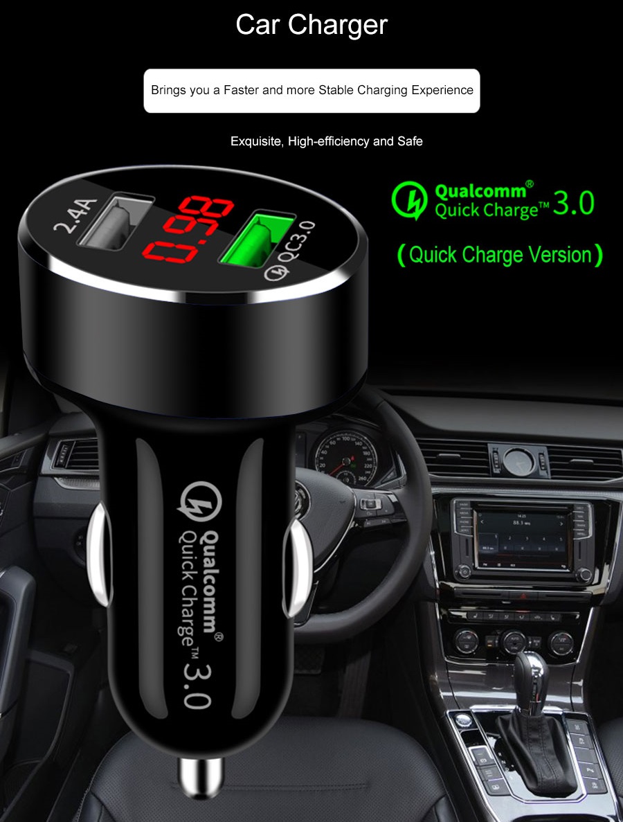 Carregador Isqueiro Quick Charge 1x USB 2.4A + 1x USB QC 3.0