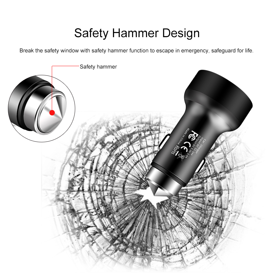 Com a função de martelo de segurança, você pode partir um vidro em caso de emergência.