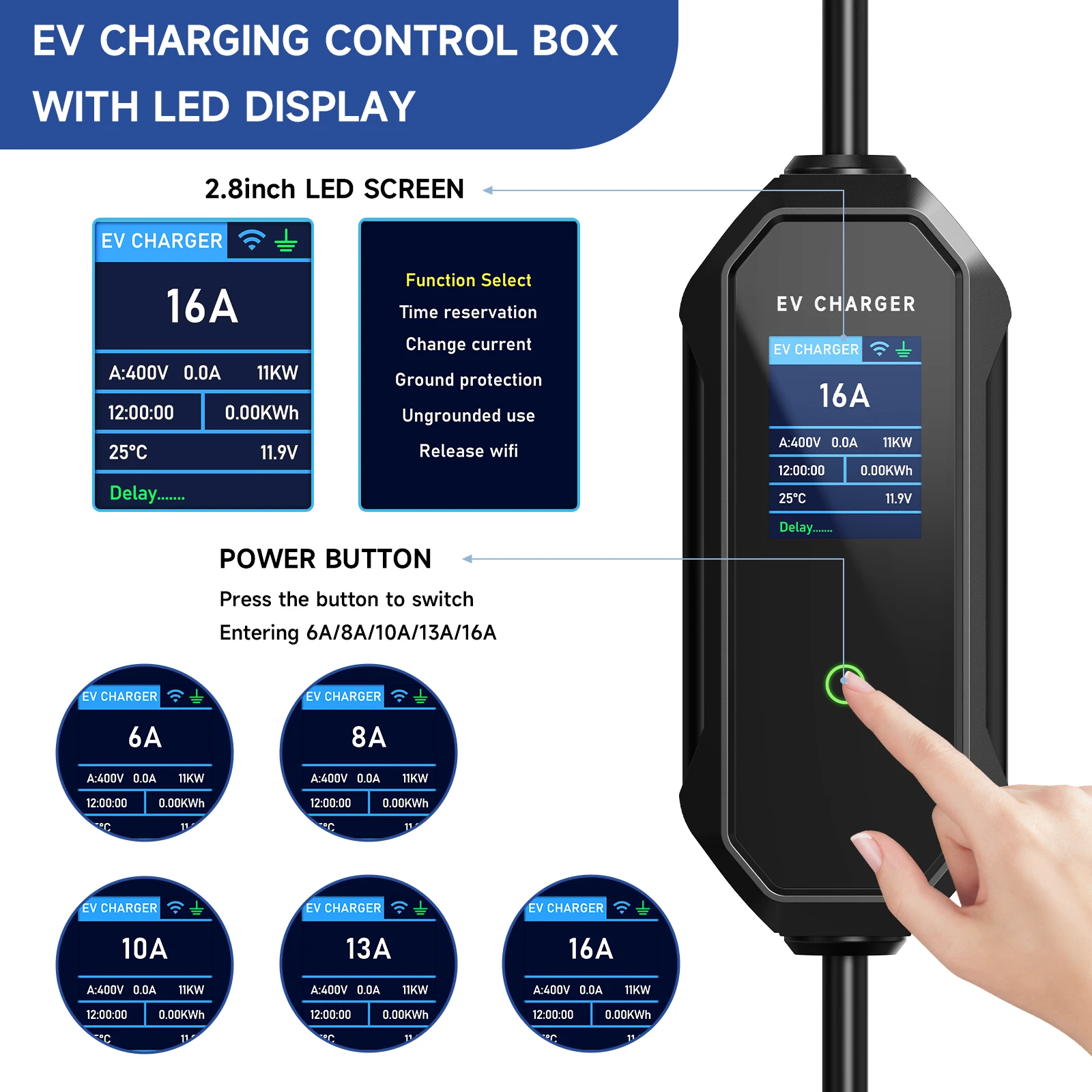 Corrente de carregamento: 6A/8A/10A/13A/16A ajustável