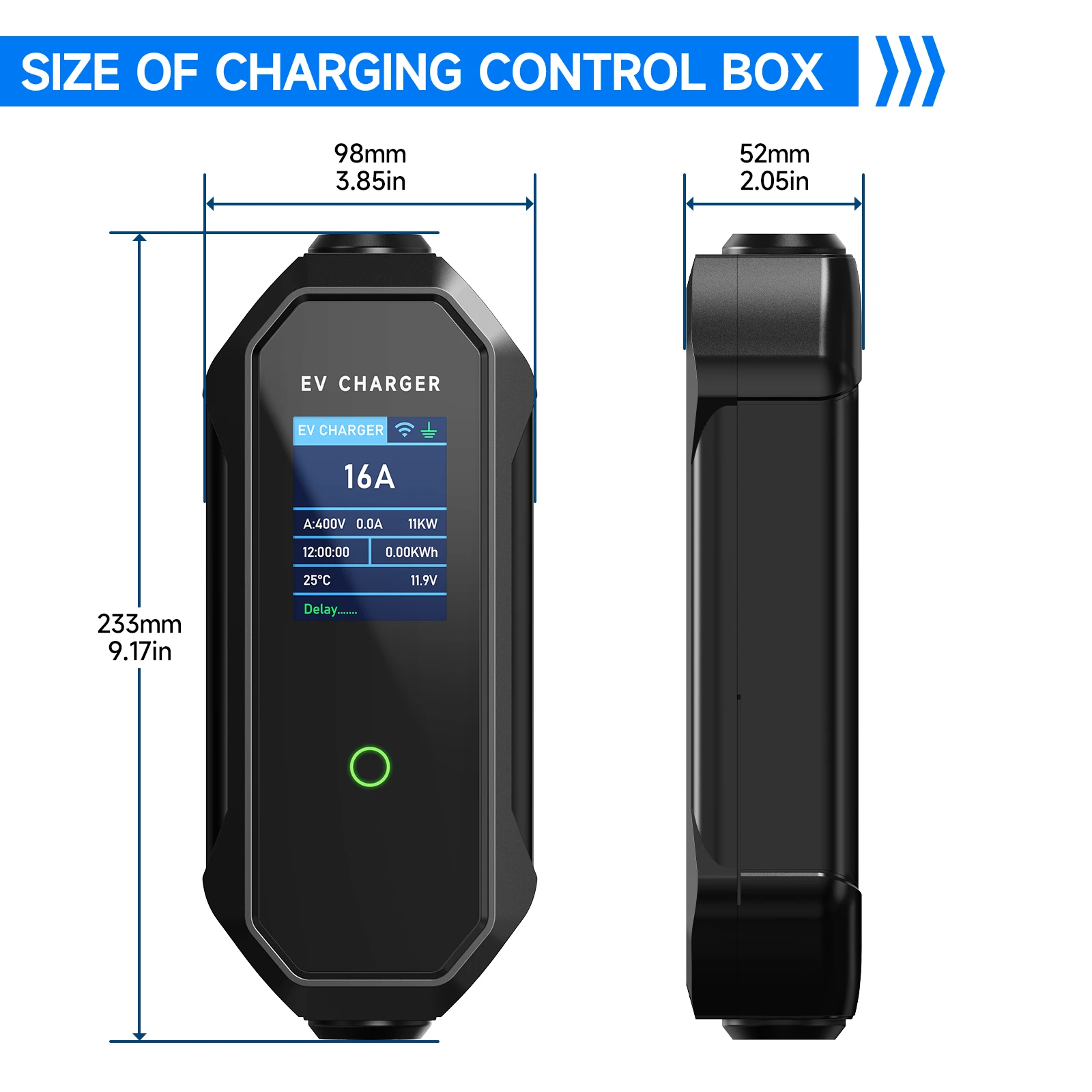 O controlador desta estação de carregamento doméstica possui uma tela LCD de 2,8 polegadas, que mostra o status de carregamento em tempo real, como status de energia, corrente de carregamento e assim por diante. As luzes indicadoras LED no carregador ajudam-no a identificar as condições de funcionamento do carregador EV e as informações de carregamento relevantes.