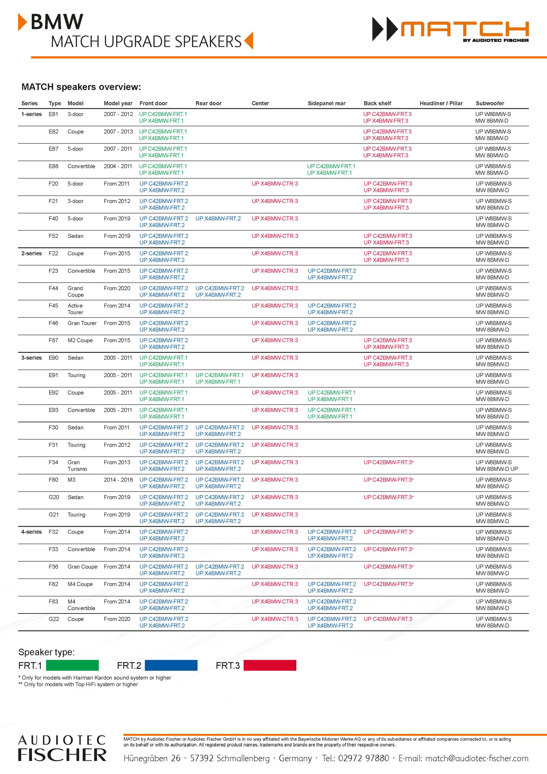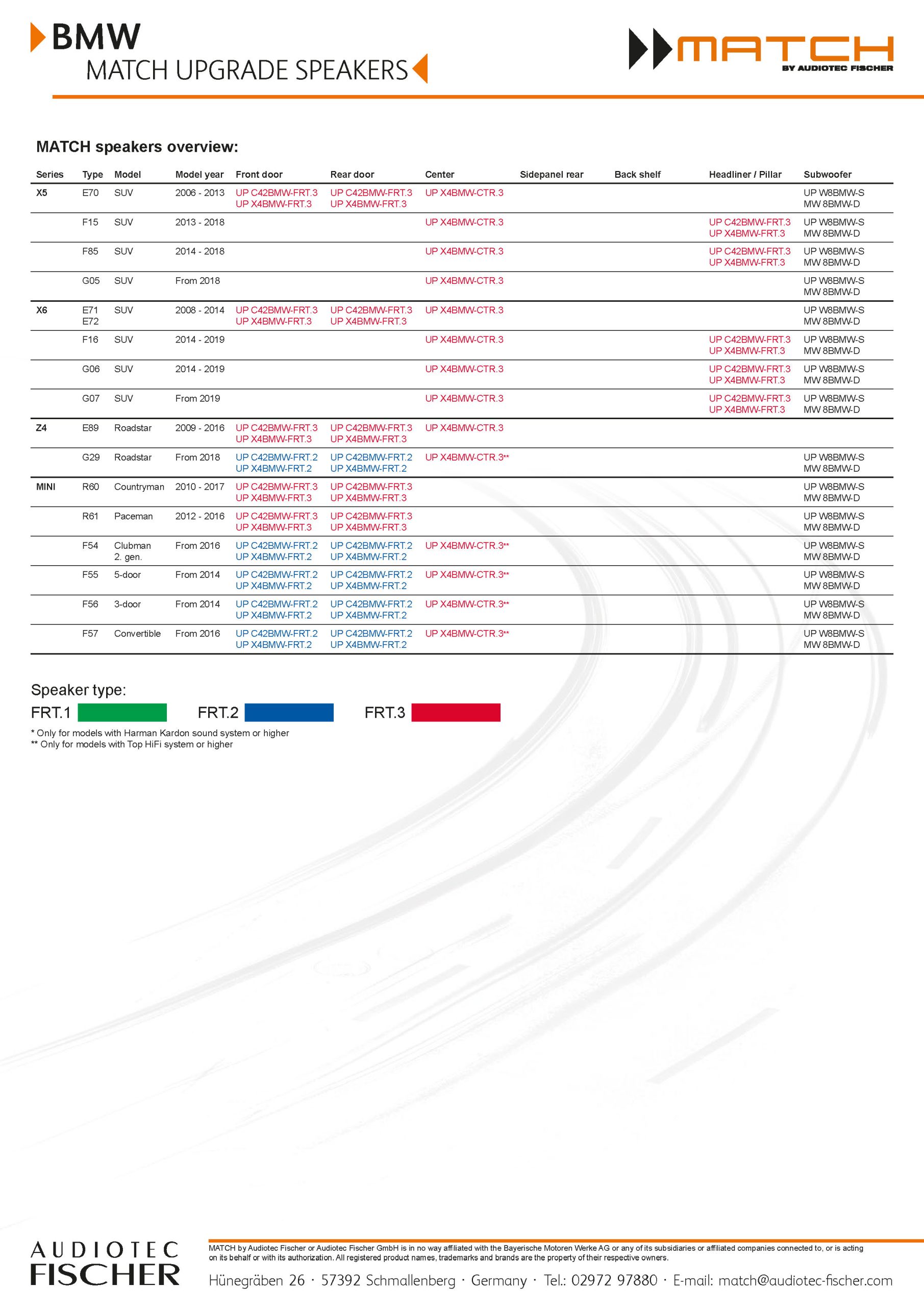 O altifalante central de duas vias coaxial Match UP X4BMW-CTR.3 é específico para modelos BMW compatíveis e permite uma instalação sem adaptações nem alterações.