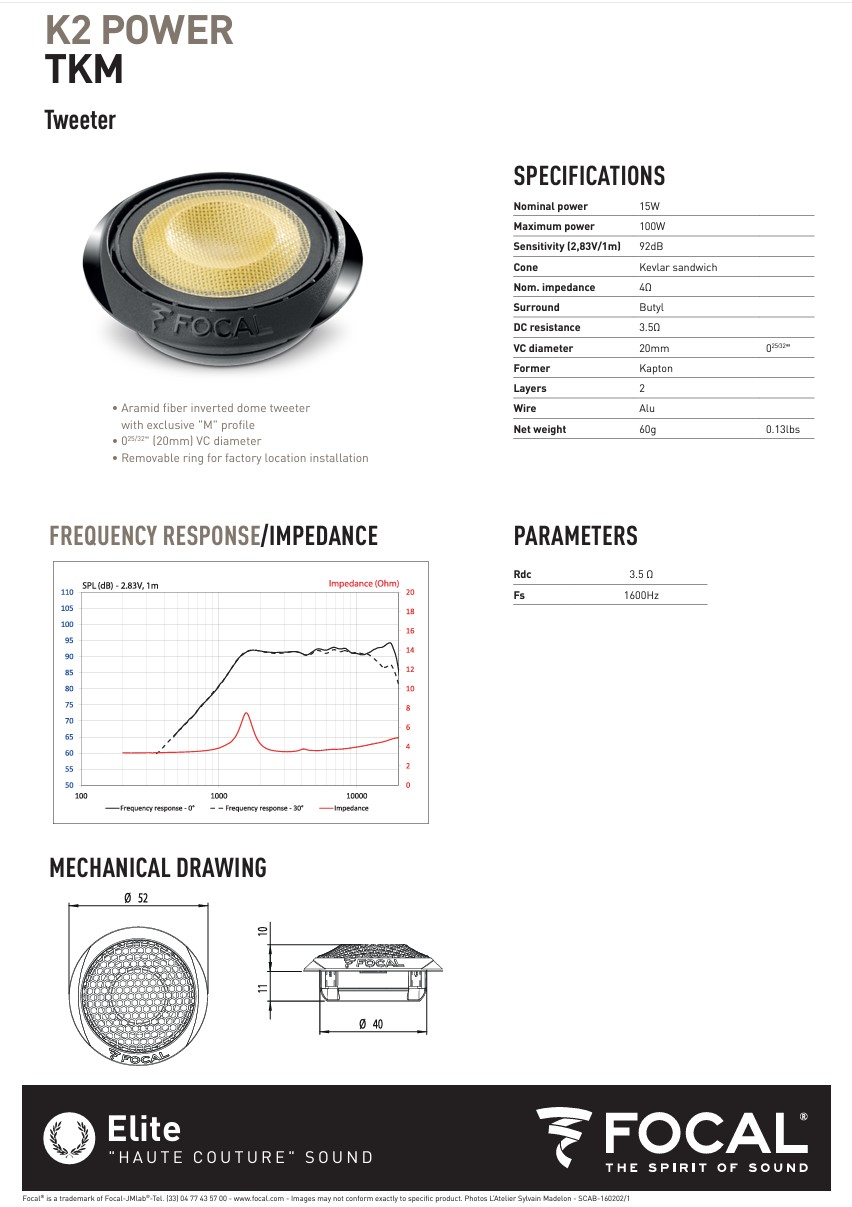 Tweeter: TKM (Perfil “M”cúpula invertida em Kevlar)