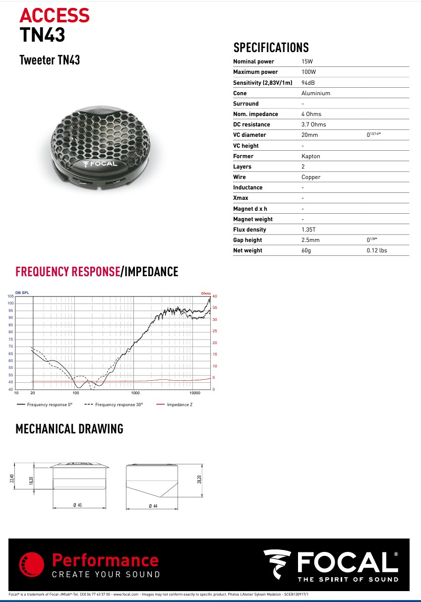Sensibilidade: (2.83V/1m): 91.3dB