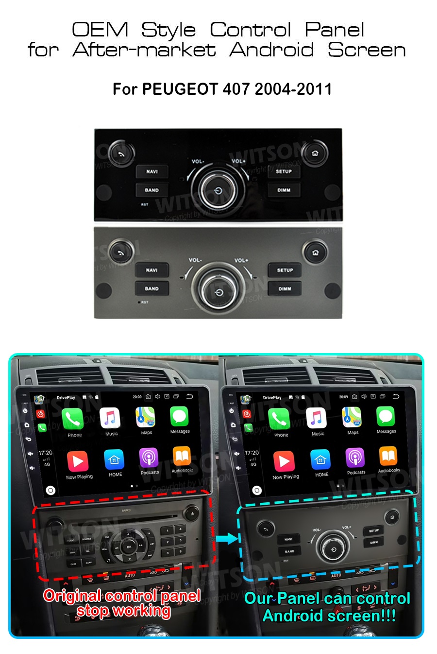 Painel frontal para rádio Android Peugeot (preto)