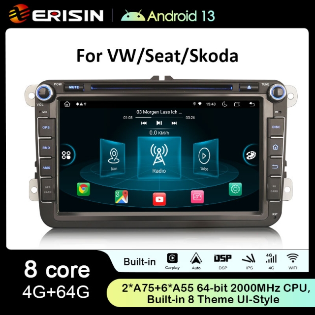 Rádio Erisin Android 13 MT8667 4GB 64GB VW 8″ HD CPW DSP