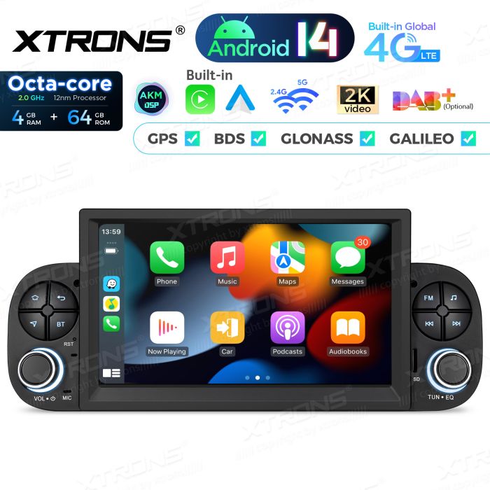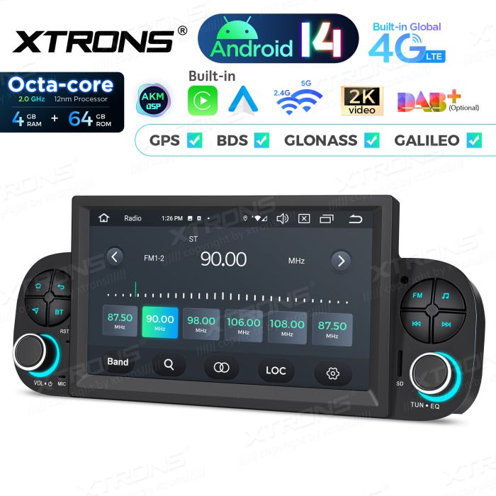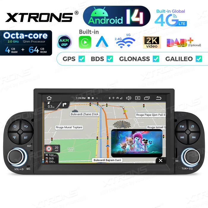 Rádio Android 14 de 7″ com processador Octa-Core e 4+64GB de memória para Fiat