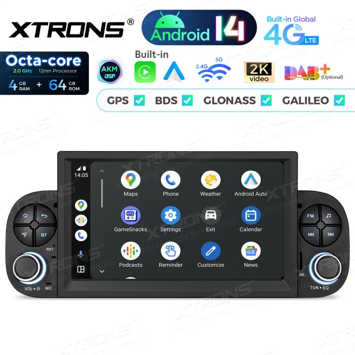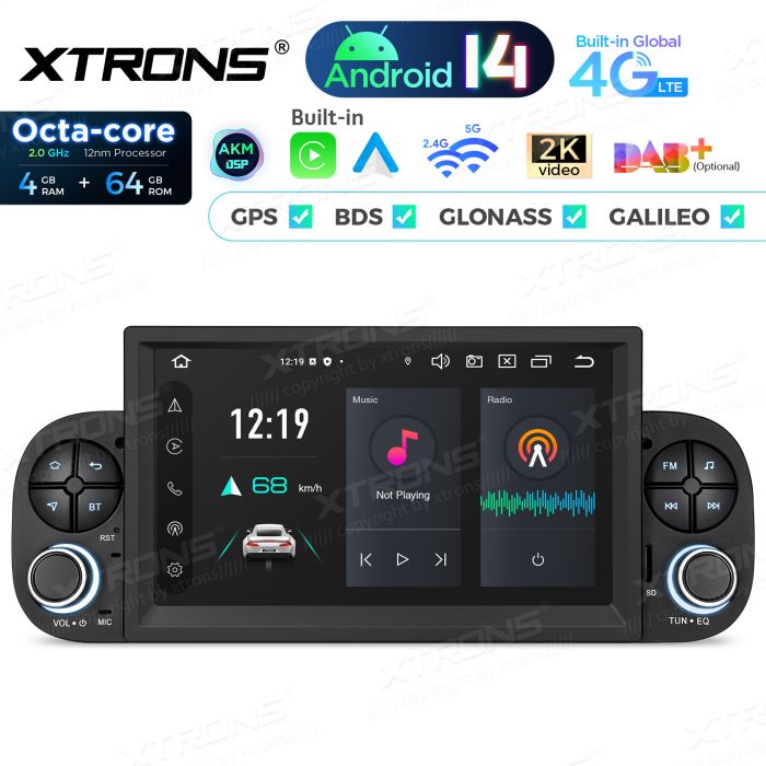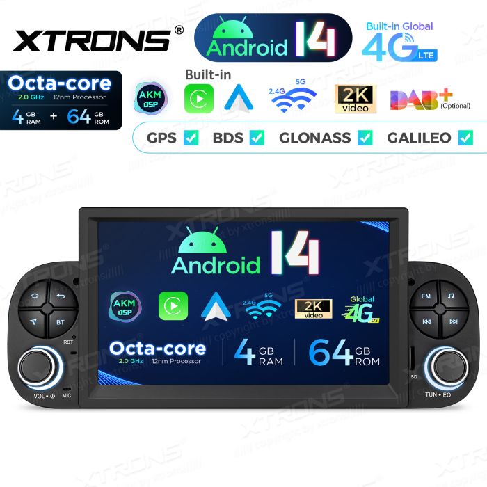 Rádio Android 14 de 7″ com processador Octa-Core e 4+64GB de memória para Fiat