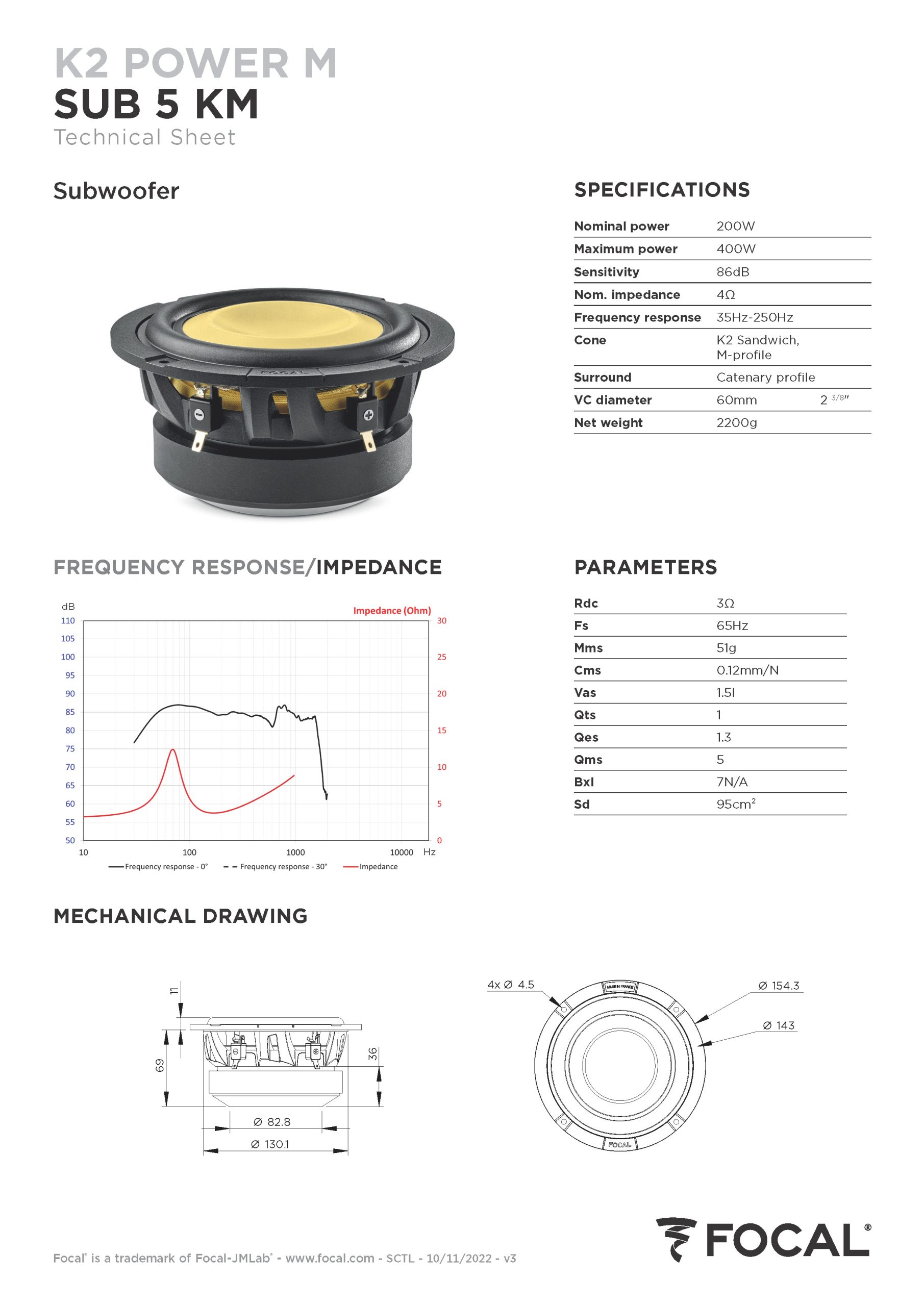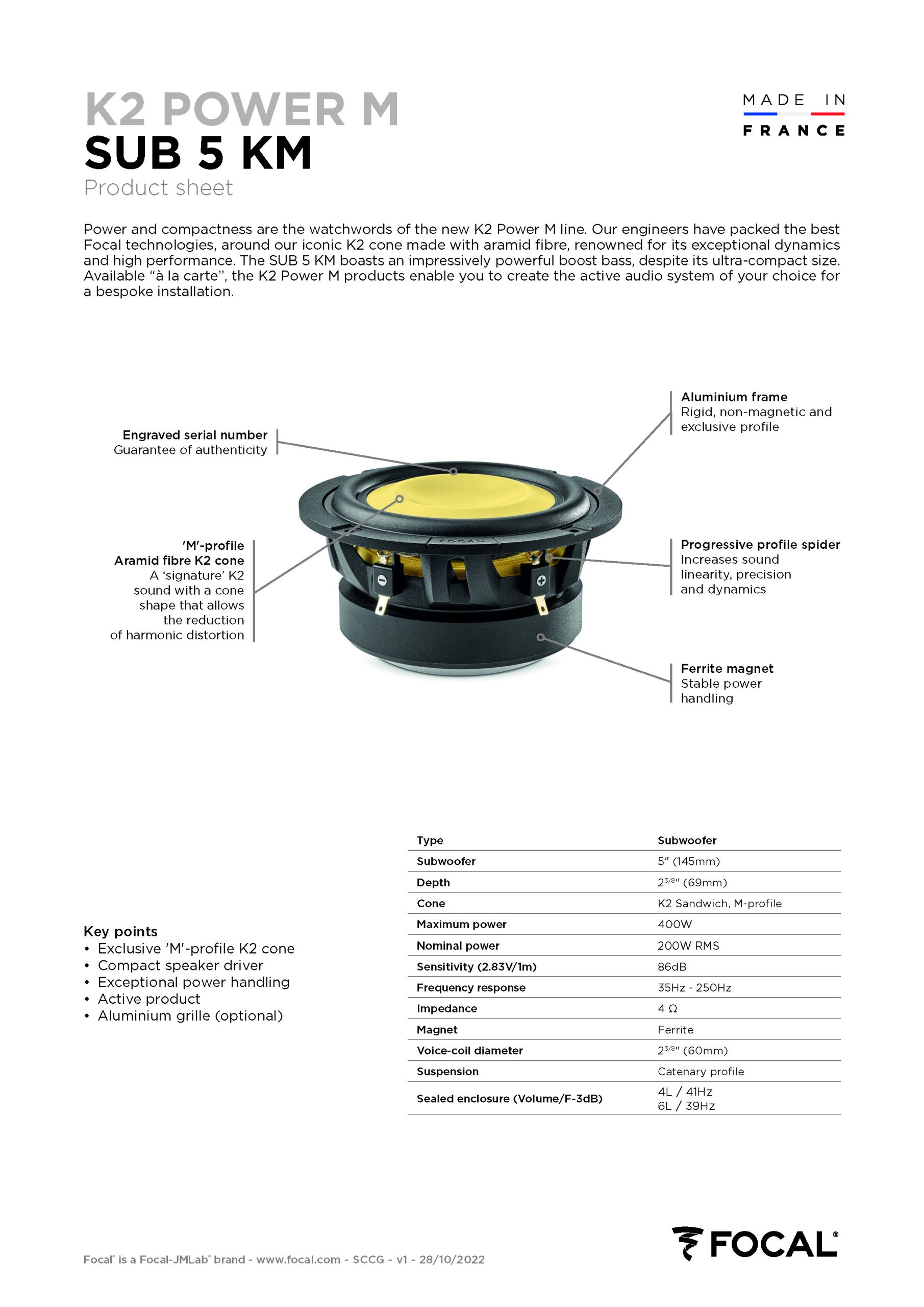 SUB 5 KM – Subwoofer 145mm Focal K2 Power M